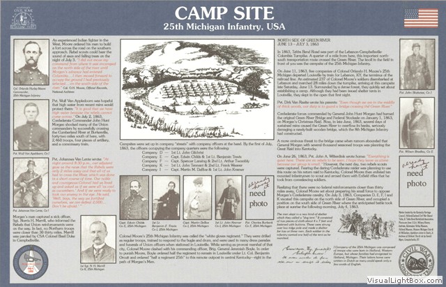 Betty Jane Camp site 25th Michigan Infantry sign 2 Camp site 25th Michigan Infantry sign Camp site 25th Michigan Infantry, USA Camp site Civil War Confederate Monument and Cemetery, Tebbs Bend Road Confederate Artilery Position Morgan Held Prisoner in Pleasant Hill Church 1861 Morgan's Demand for Surrender Moore's Refusal Morgan's Revenge Nobly Did They Die Raid on the Hiestand-Chandler House Rebel New Year's Eve Party 1862 jquery carousel lightboxby VisualLightBox.com v6.1